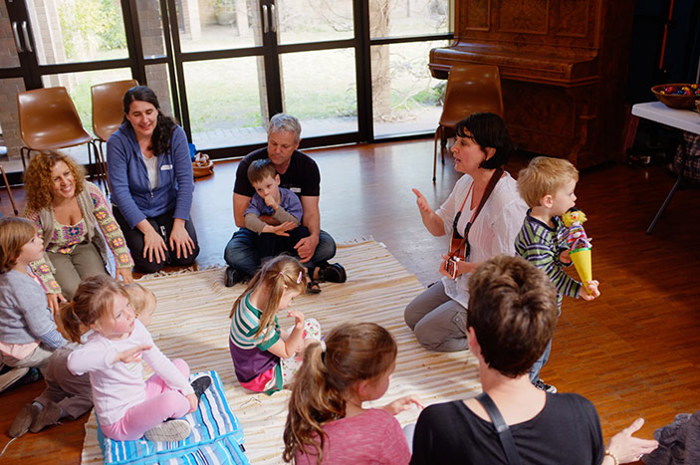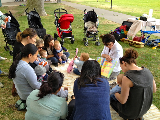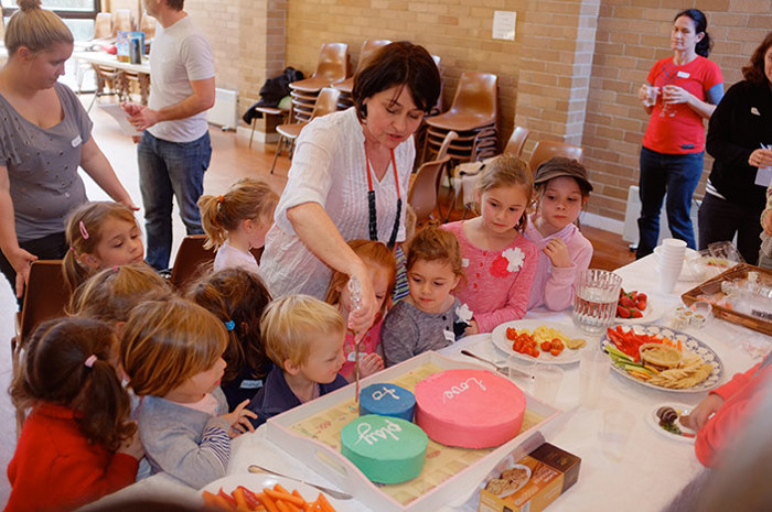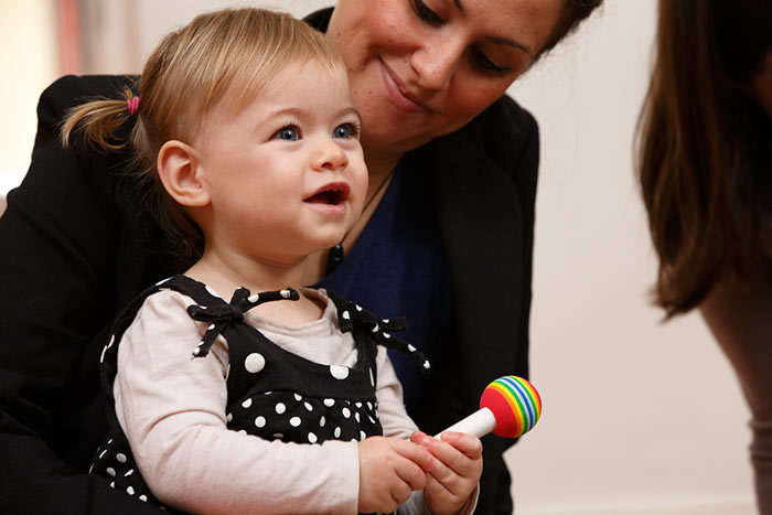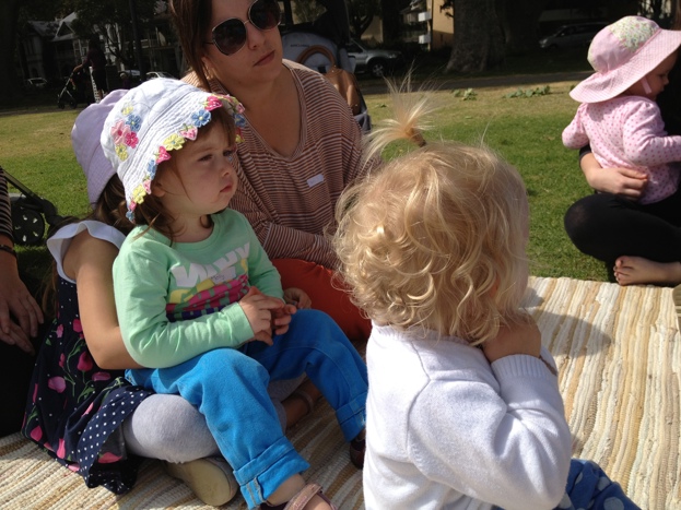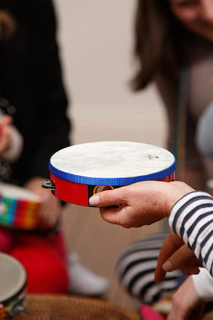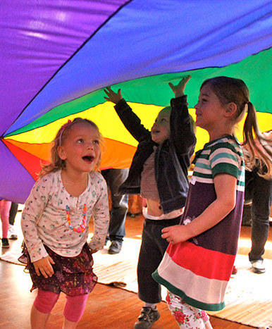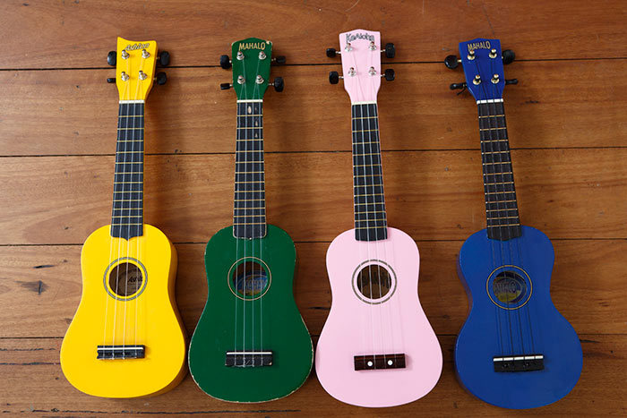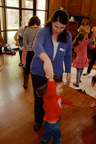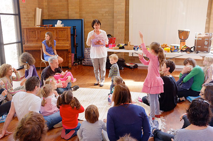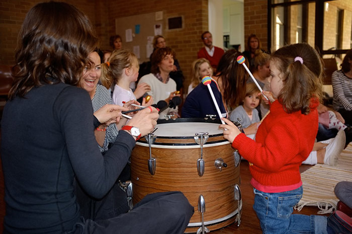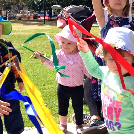 Child Care Centre-Jo and Vesma play ukulele for a child's birthday celebration